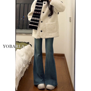遮肉显瘦喇叭马蹄裤 复古高腰微喇牛仔裤 胖mm弹力大码 新款 子 女春季