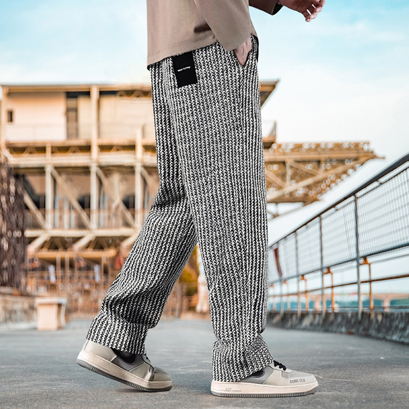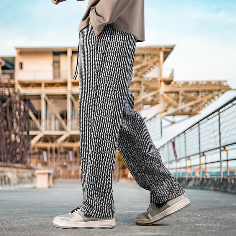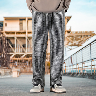 男胖子加肥加大长裤 春秋条纹印花百搭休闲裤 子 男装 纺布者潮牌大码