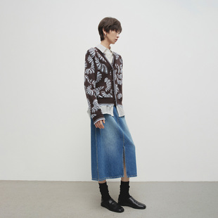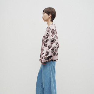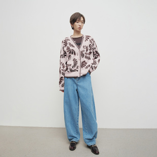 复古软糯显瘦毛衣BDS1UD1081 女25春季 播商场同款 提花V领针织衫