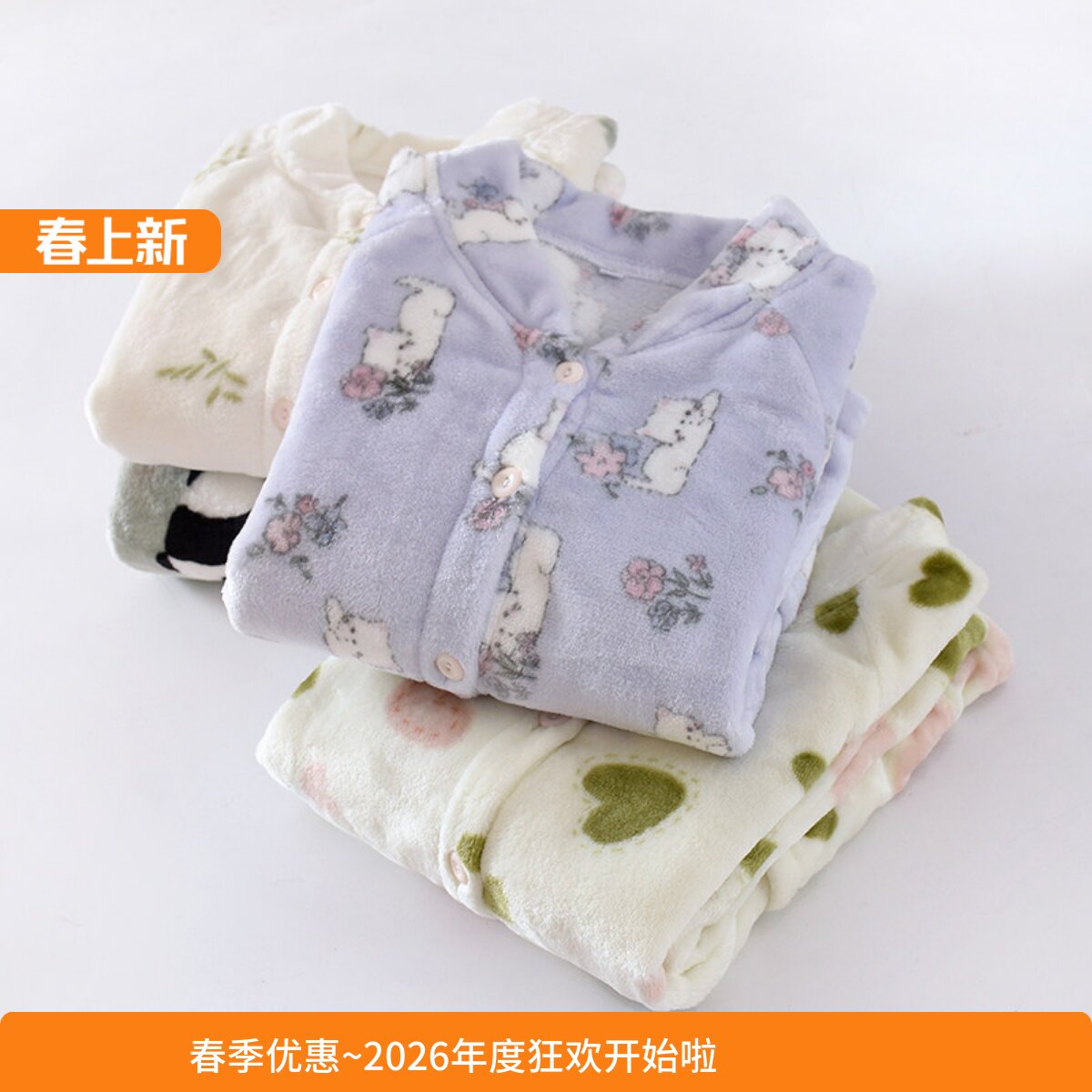 新款 单件上衣加绒加厚保暖珊瑚绒家居服可外穿 睡衣女法兰绒秋冬季