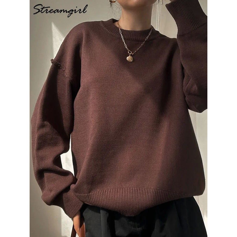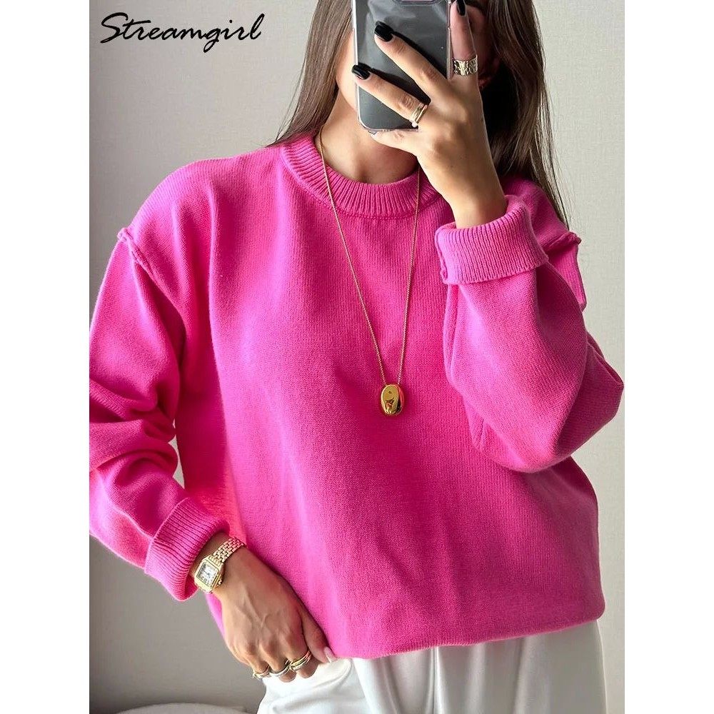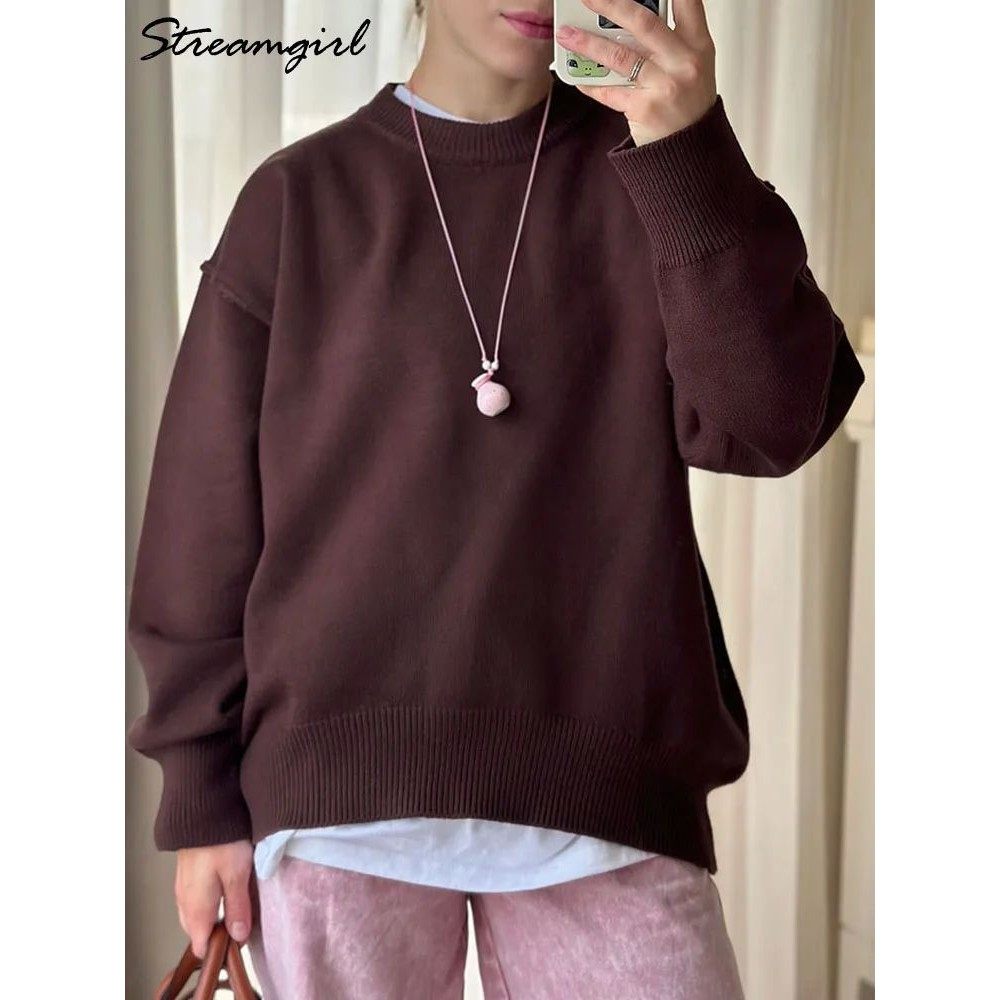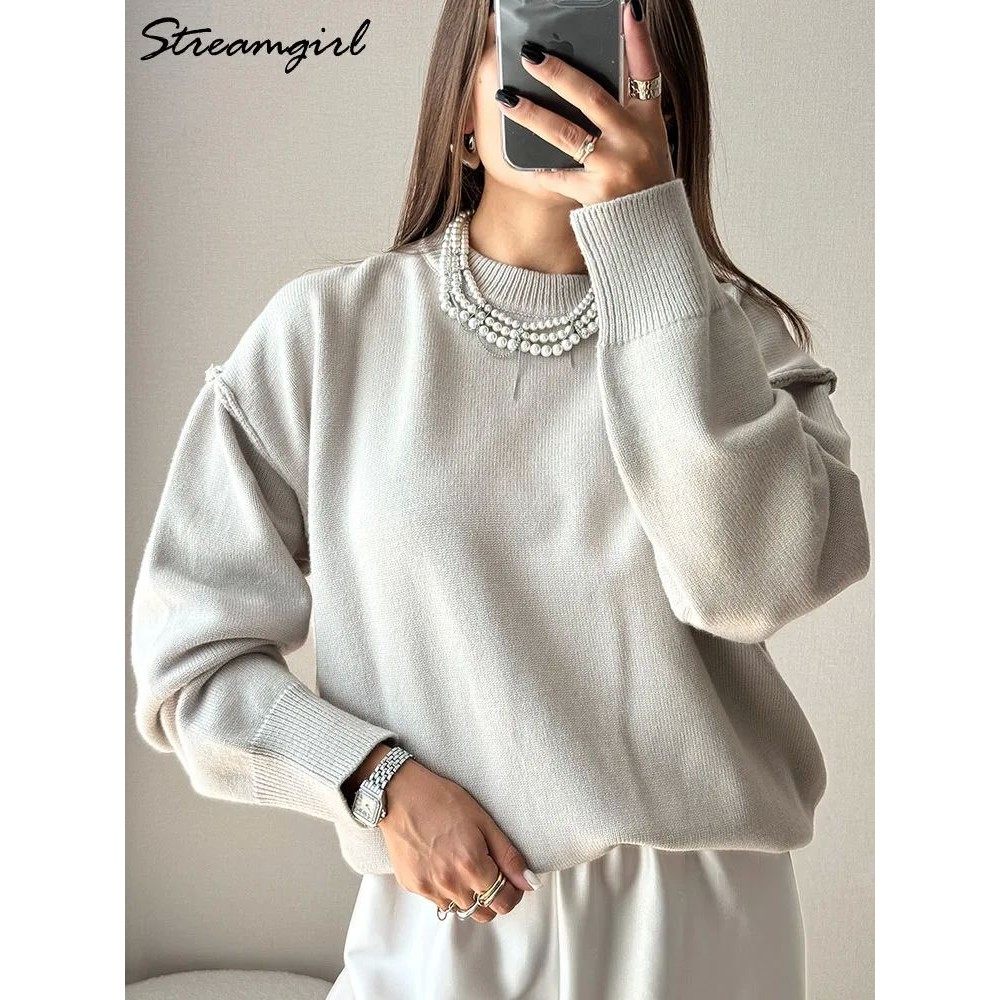 高级感上衣宽松打底针织衫 圆领100%纯山羊绒衫 女高端毛衣秋冬新款