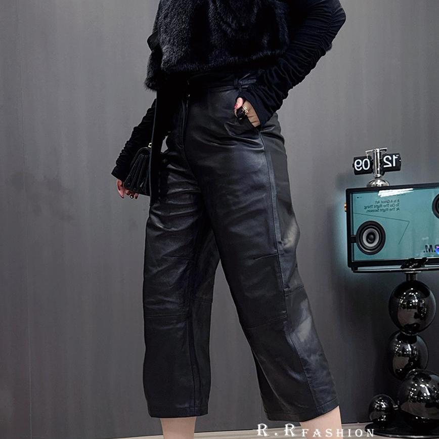 纯色直筒裤 高腰八分裤 简约百搭长裤 皮裤 裤 新款 时尚 子 女2024秋季