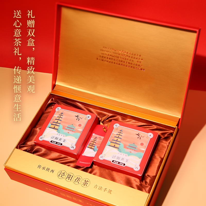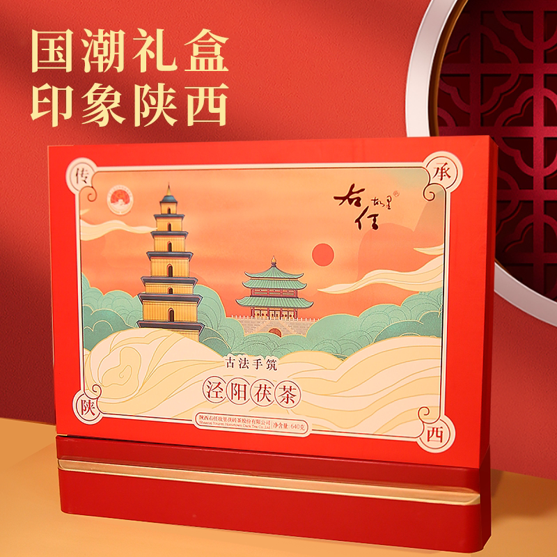 泾阳茯砖茶金花特级黑茶五年陈茶手筑藏茶640g礼盒大雁塔联名款