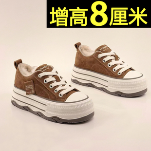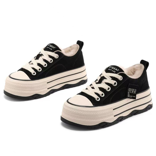 厚底轻便板鞋 加绒百搭软底保暖小白鞋 女 女冬季 人本白色大头帆布鞋