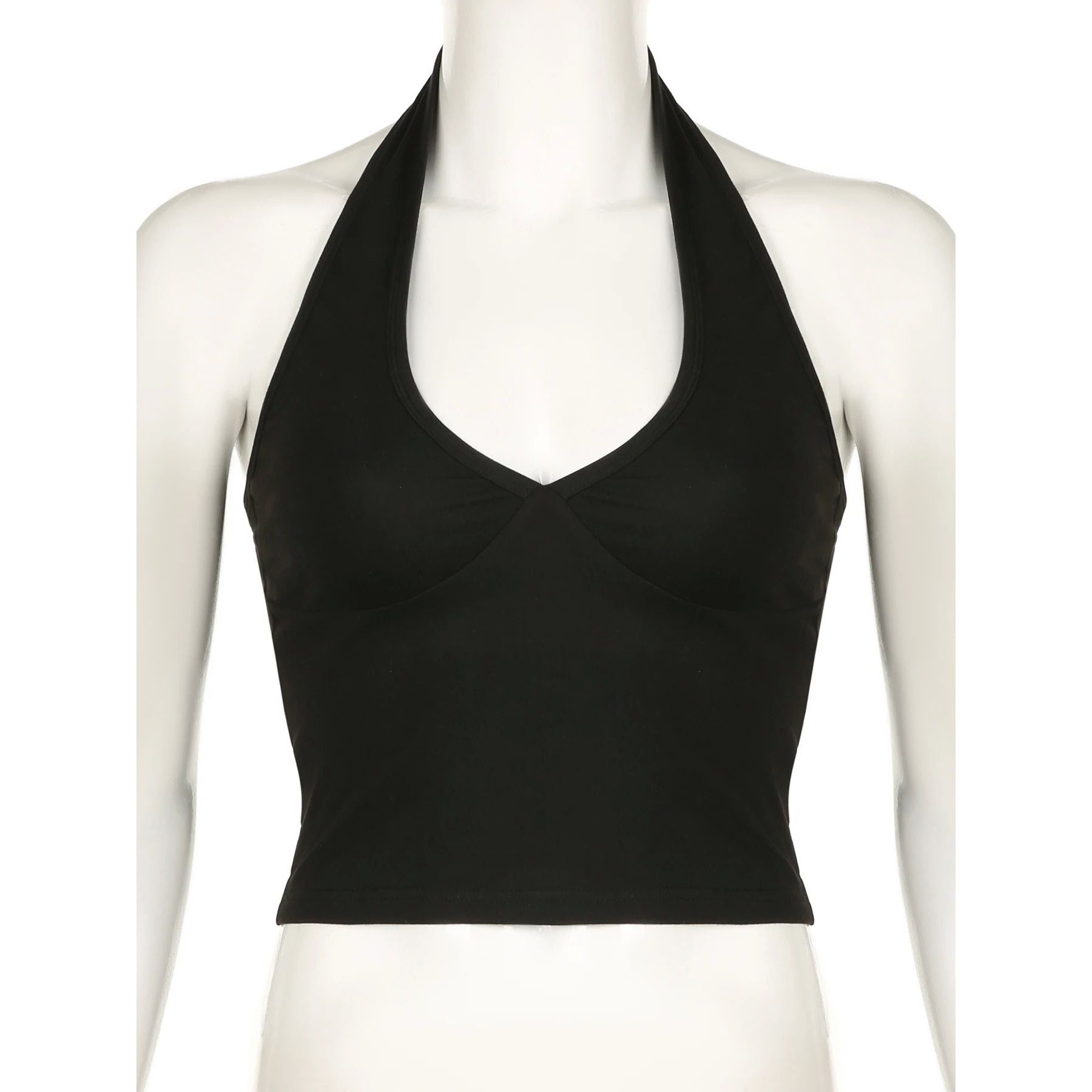 color top hanging women纯色v字领挂脖上衣女 neck Solid