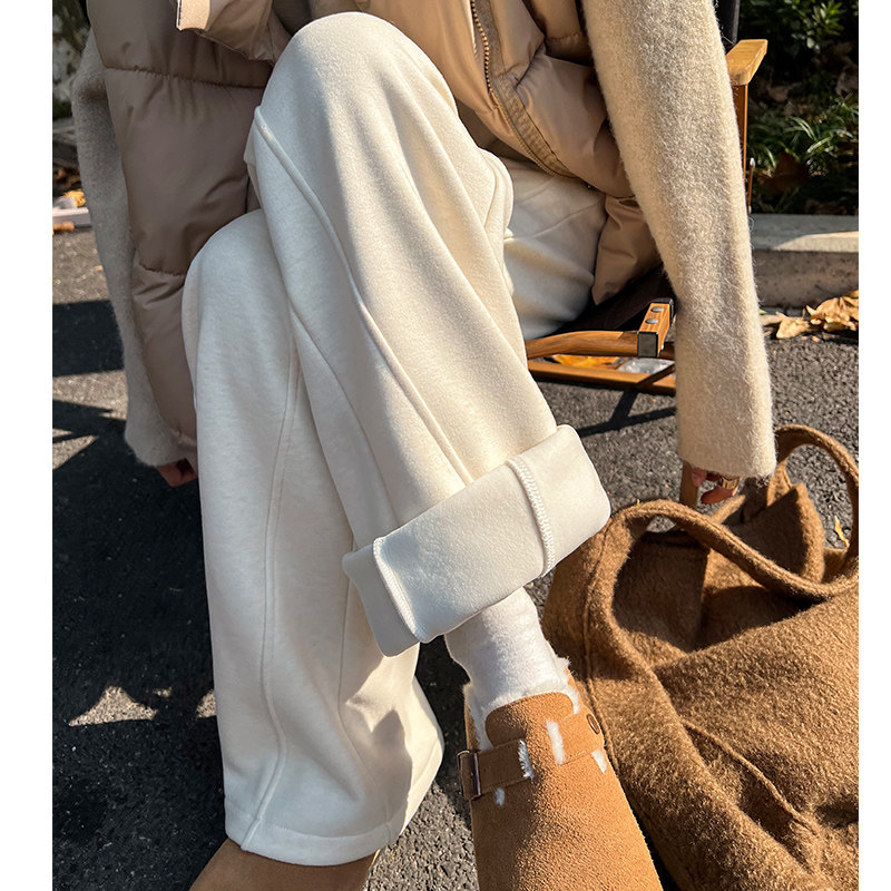 佐梦依加绒加厚休闲裤 弯刀阔腿裤