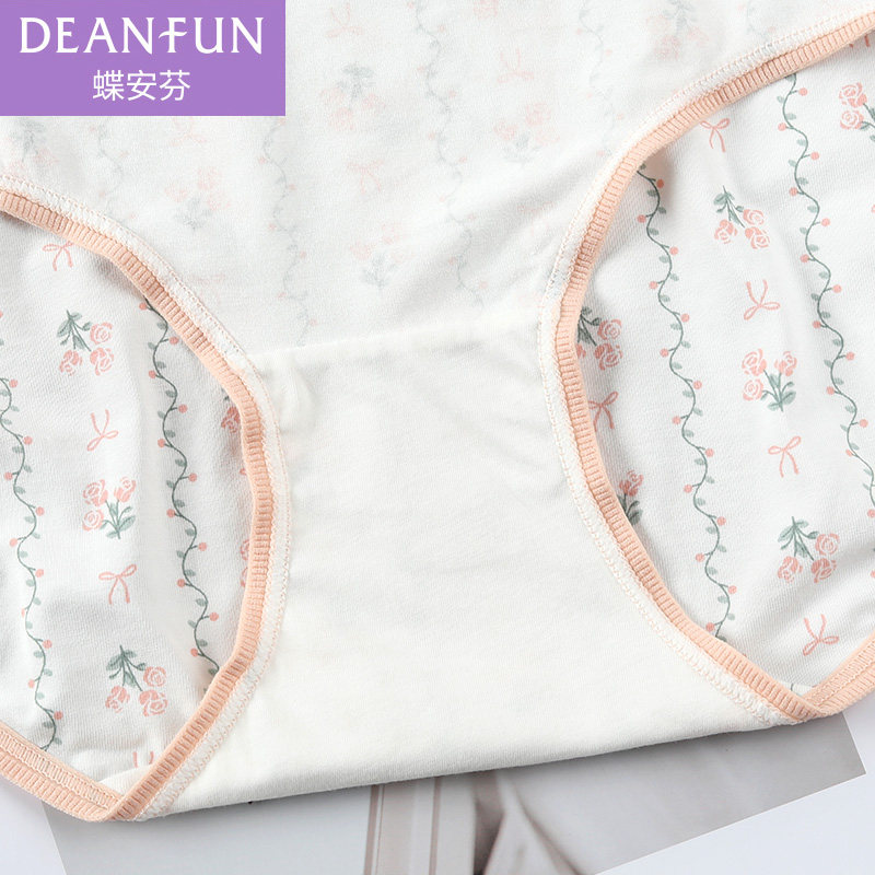 头 女生印花短裤 蝶安芬内裤 女中腰包臀100%纯棉全棉裆抗菌小平角裤