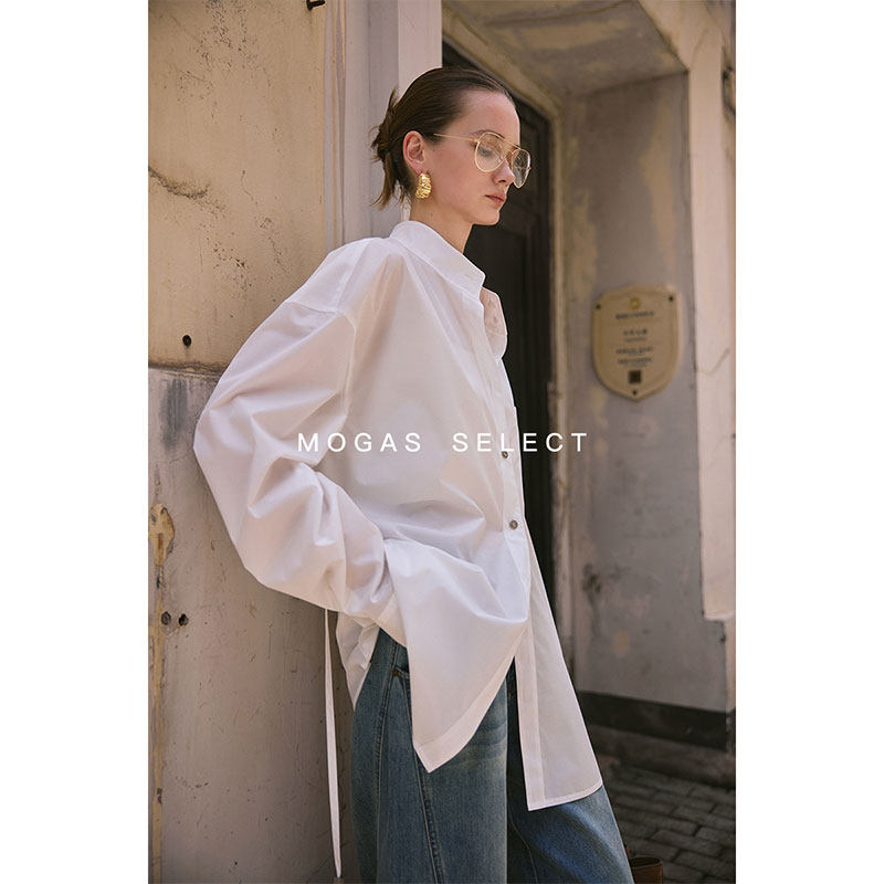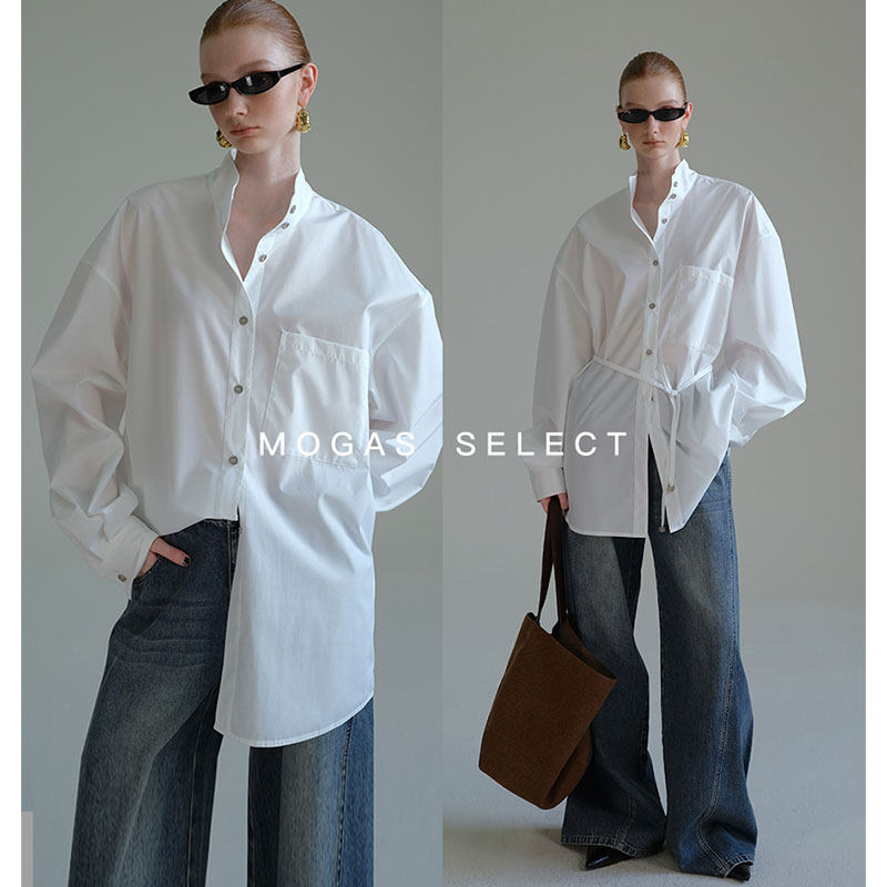 白色显瘦立领木耳打底衫 2025春秋新款 百搭上衣气质衬衣 女长袖 衬衫