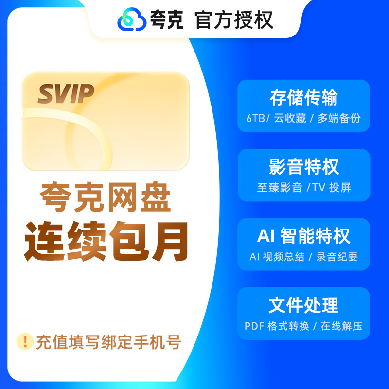 夸克网盘svip超级会员月卡1个月浏览器云收藏一个月 连续包月