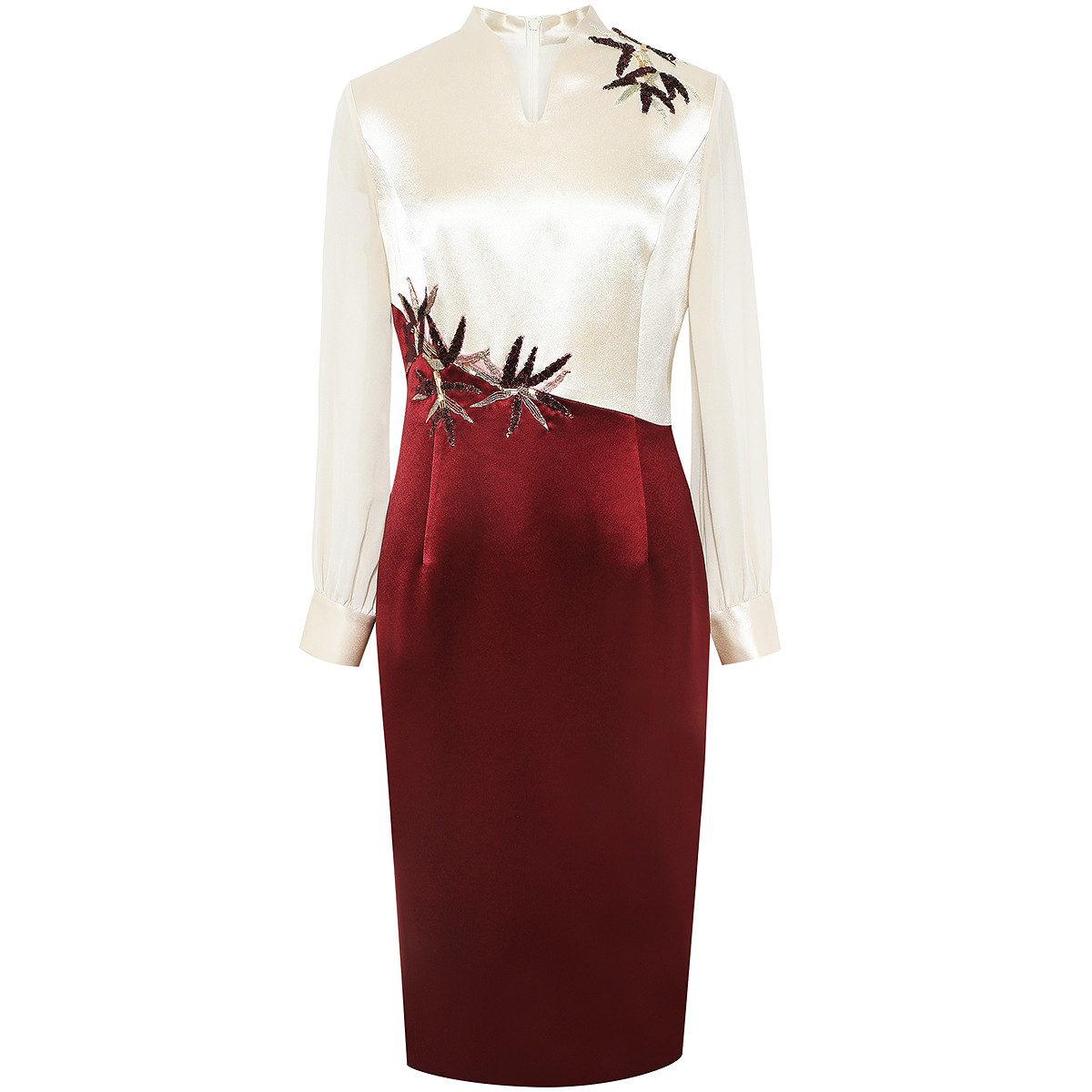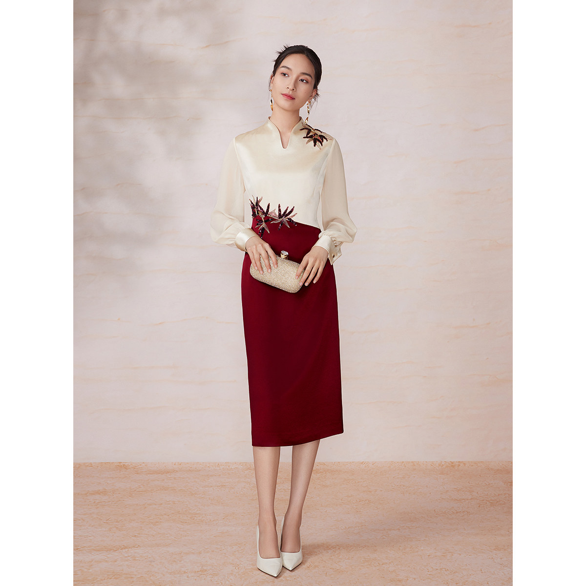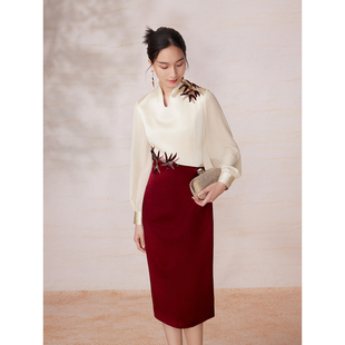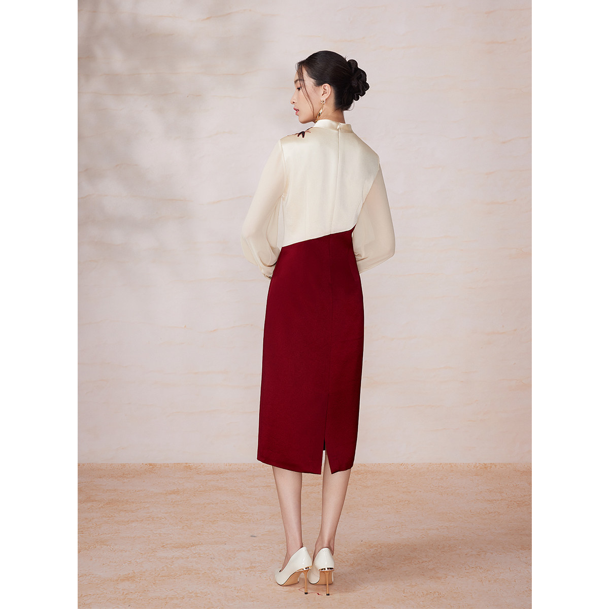 国风刺绣拼接宴会礼服连衣裙女 粉蓝衣橱春秋装 馥郁东方醋酸裙