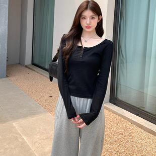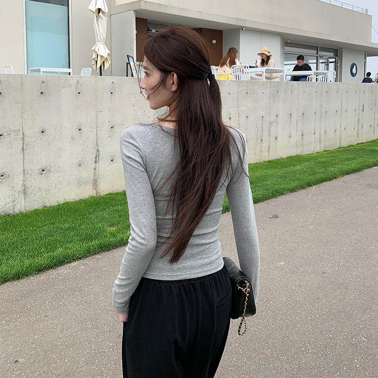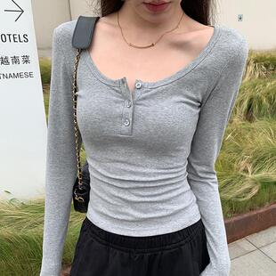 stevens美式 内搭外穿上衣春季 长袖 女弹力灰色修身 外穿 打底衫 alex