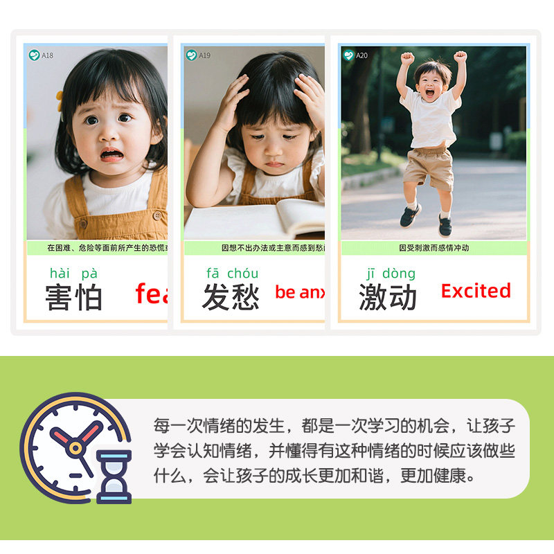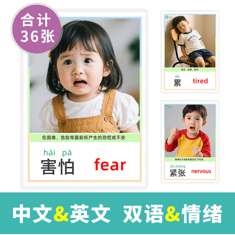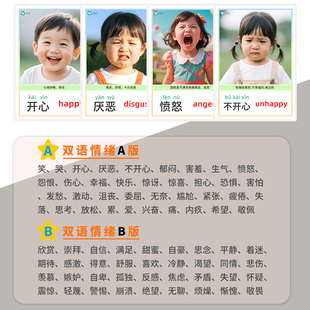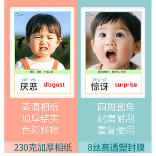 情绪认知卡片英文英语单词表达闪卡表情脸谱图自闭症儿童训练教具