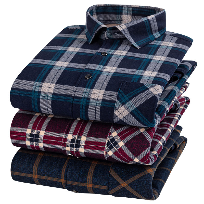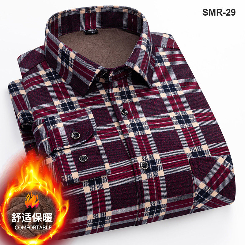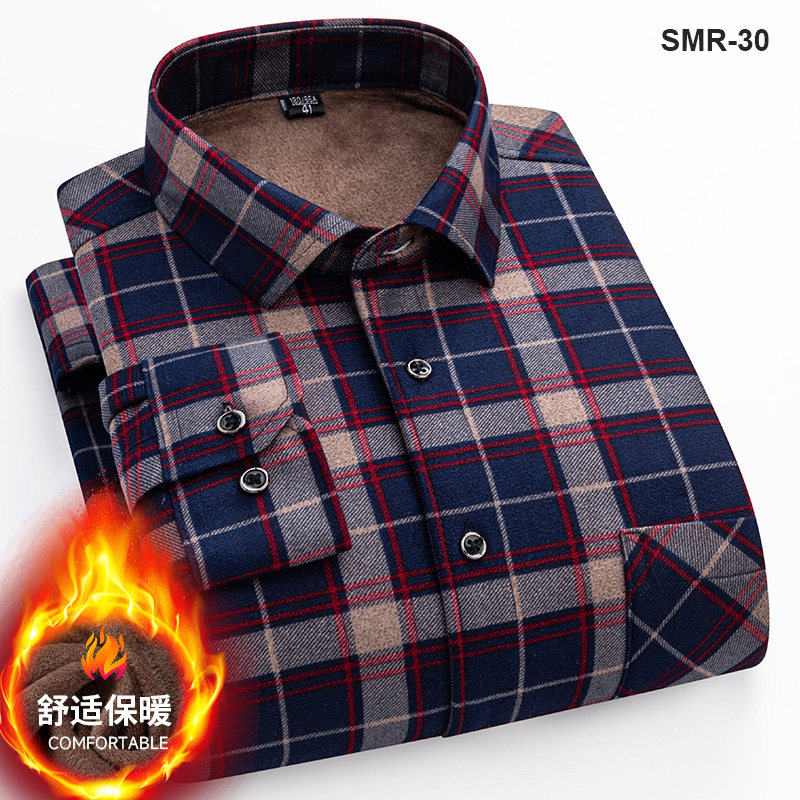 爸爸装 秋冬加绒保暖衬衫 男加绒衬衣男印花中青年格子加厚加绒寸衫