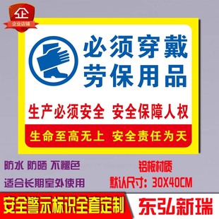 必须穿戴劳保用品标识牌工厂车间消防安全警示铝板反光标志牌定制
