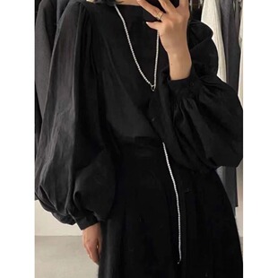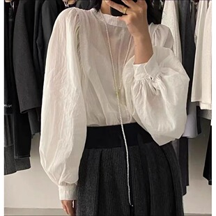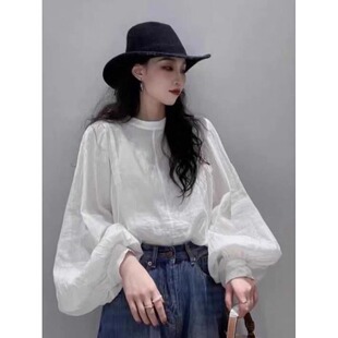减龄小众洋气泡泡袖 女秋季 防晒上衣 棉白色麻衬衫 高级感亚麻灯笼袖