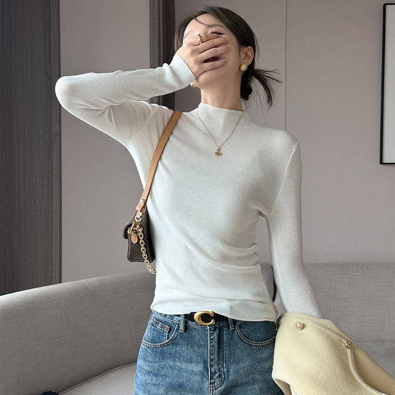 抽条内搭外穿 纯色高级感羊毛针织打底衫 25秋冬款 女半高领毛衣修身