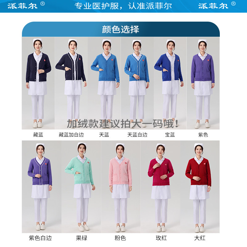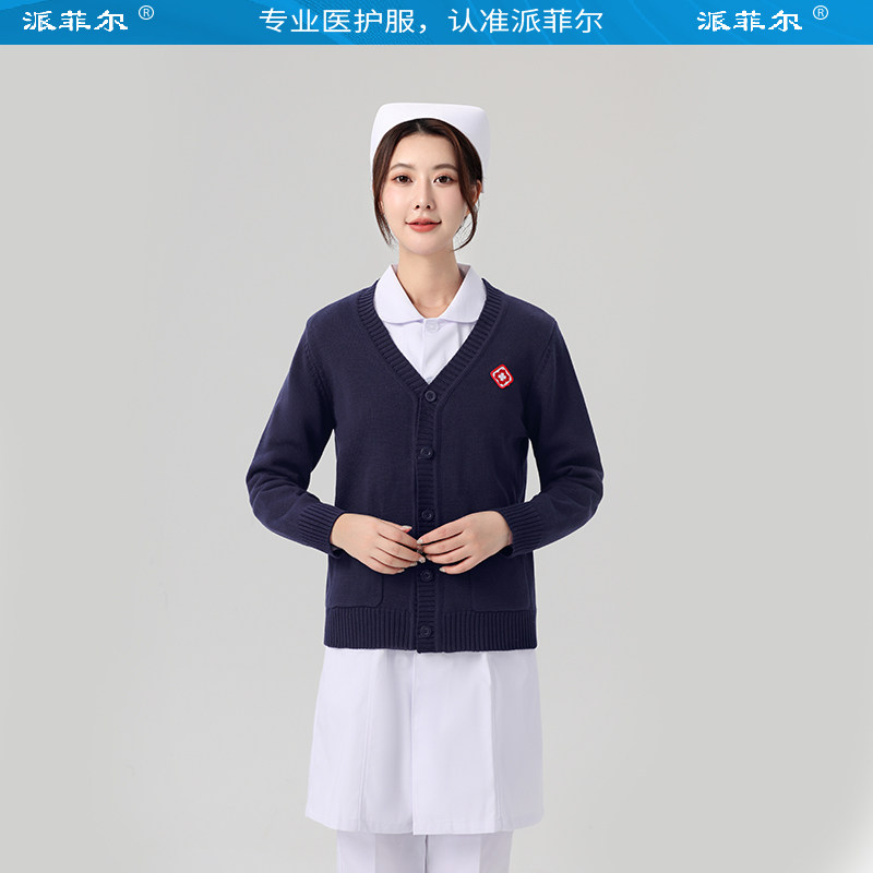 派菲尔护士毛衣女外套开衫 医院外穿不起球外搭加绒加厚蓝色秋冬季