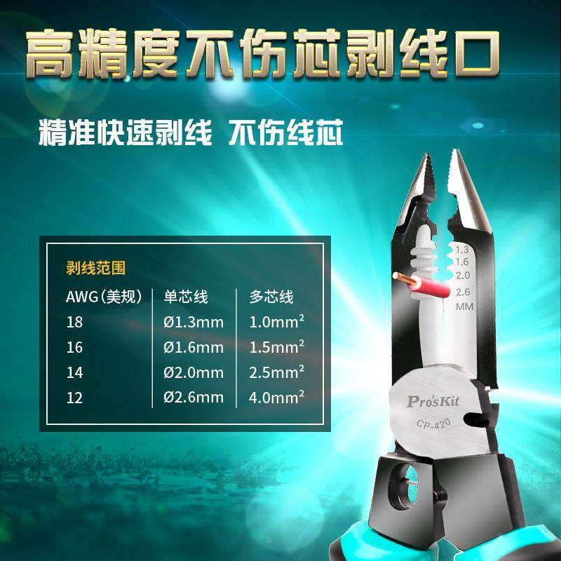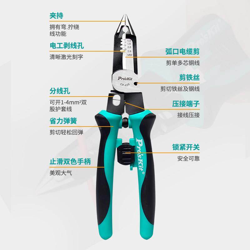 宝工CP 420剥线钳多功能电工钳端子压接钢丝钳开口剥皮拨线尖嘴钳