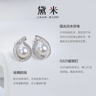 E008SD 925银淡水珍珠耳环大颗粒耳钉珠宝耳饰 南珠宫伴缘