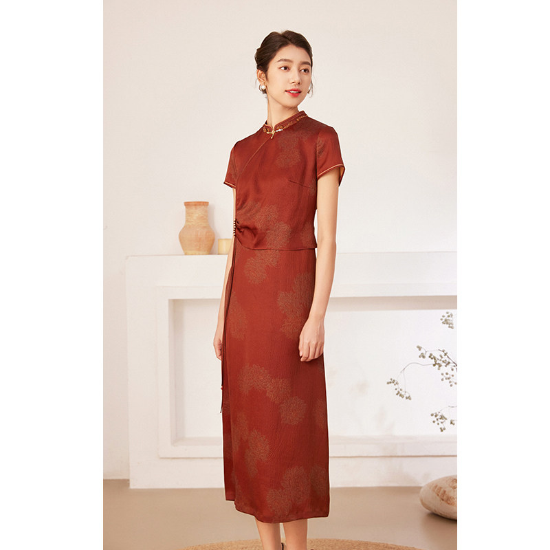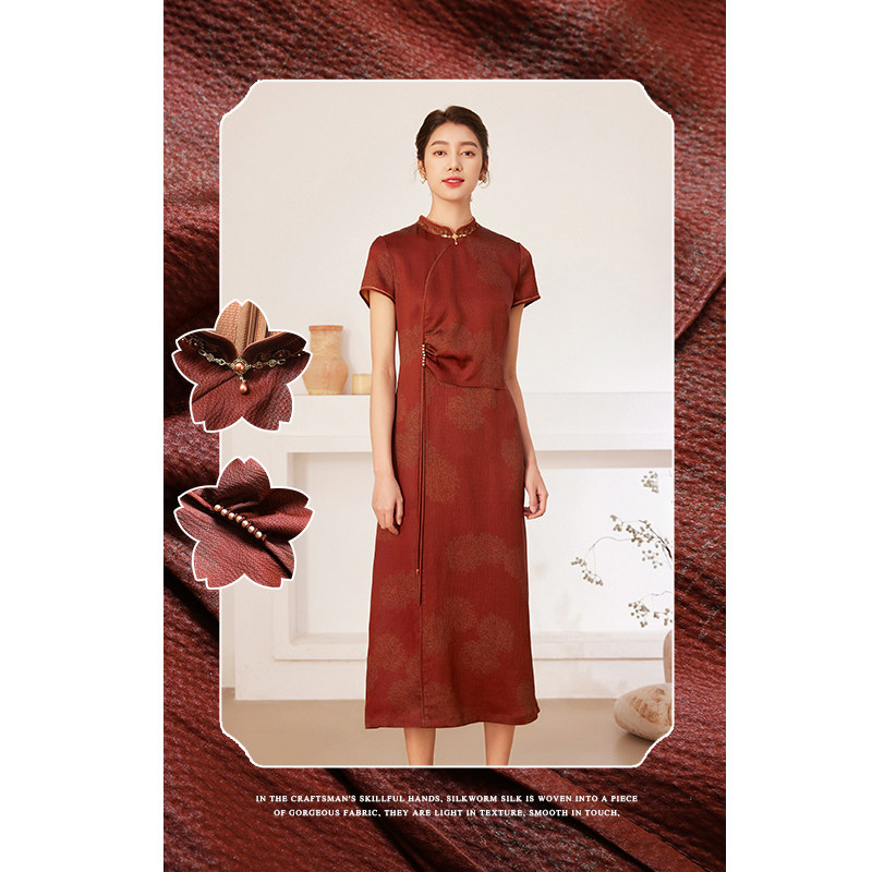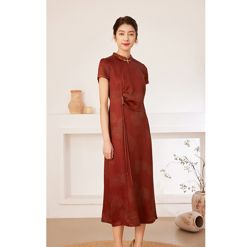 重磅香云纱 乔万尼旗袍连衣裙贵气高级感23mm珍珠缎EM2E915806