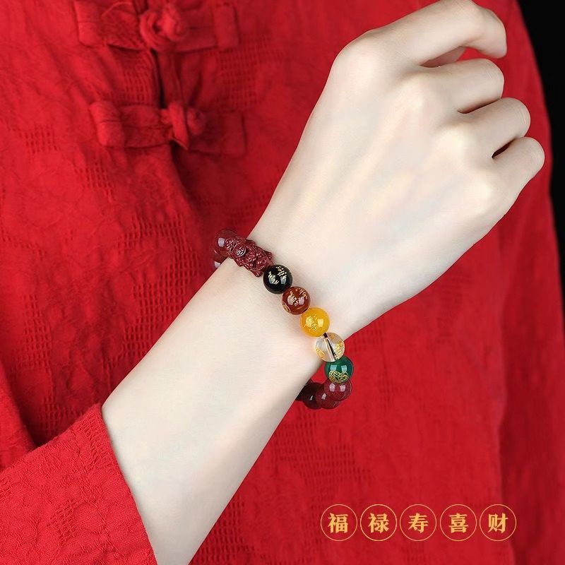 庆祥泰朱砂手串正品 2026属马本命年三合六合男手链 官方旗舰店女款