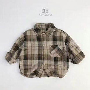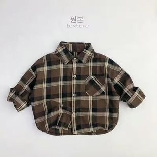 长袖 春装 儿童潮上衣男孩帅洋气春秋外套衬衣 格子2024新款 男童衬衫