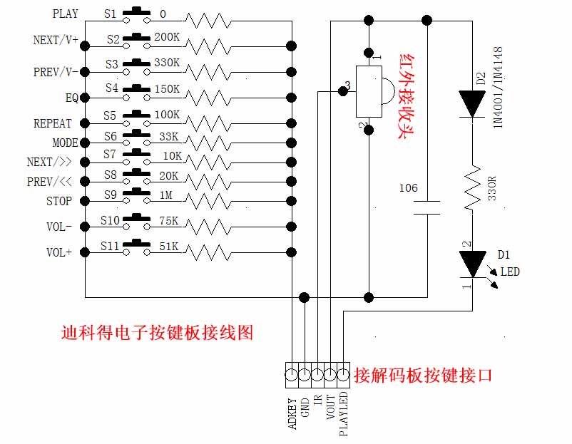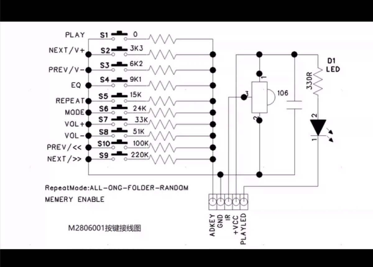 无损WAV音频解码 板电铃上电下一曲循环播放 MP3解码