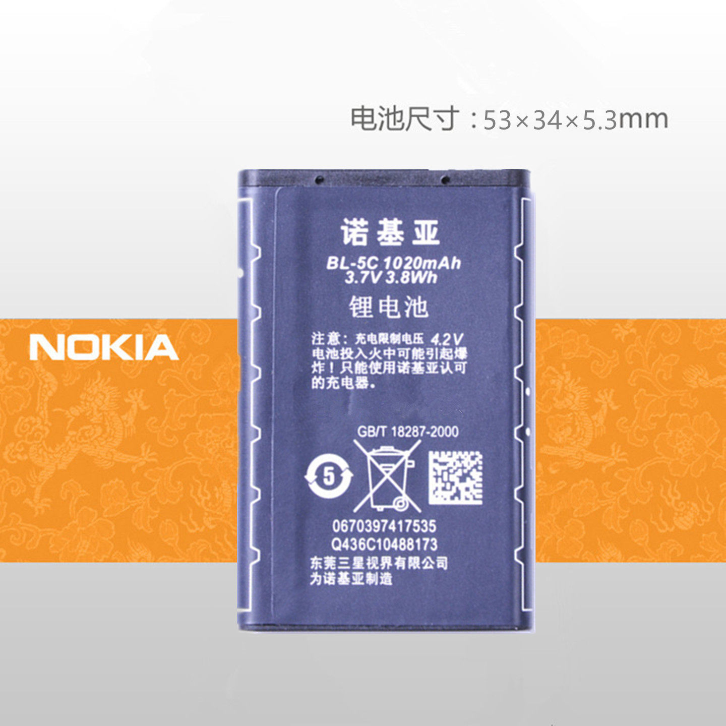 诺基亚16001616501680c1681c1682c1800手机原装 5C电池座充电器