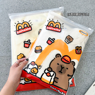 卡通旅行衣物收纳袋小衣物整理收纳分装 密封薄膜收纳袋麦当劳水豚