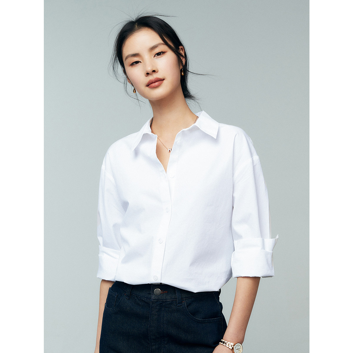 春秋气质法式 女叠穿 高光打底衬衣 白色衬衫 初棉OL风80s纯棉长袖