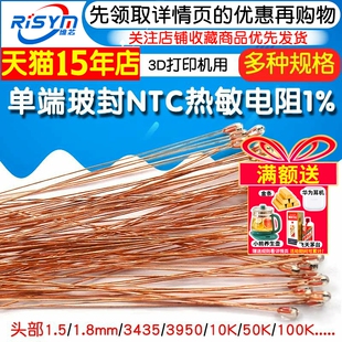 3435 NTC热敏电阻头部1.3 3950 10K50K100K 1.8mm单端玻封MF51