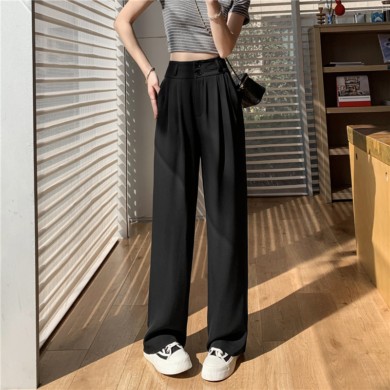 显高直筒休闲垂感阔腿裤 小矮个子高腰西装 搭配窄版 女高级感夏装 裤