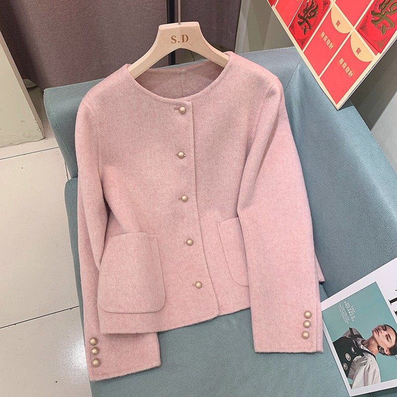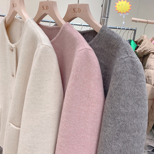 小个子大衣 重磅立领毛呢外套女气质保暖短款 pusumede 韩女轮廓