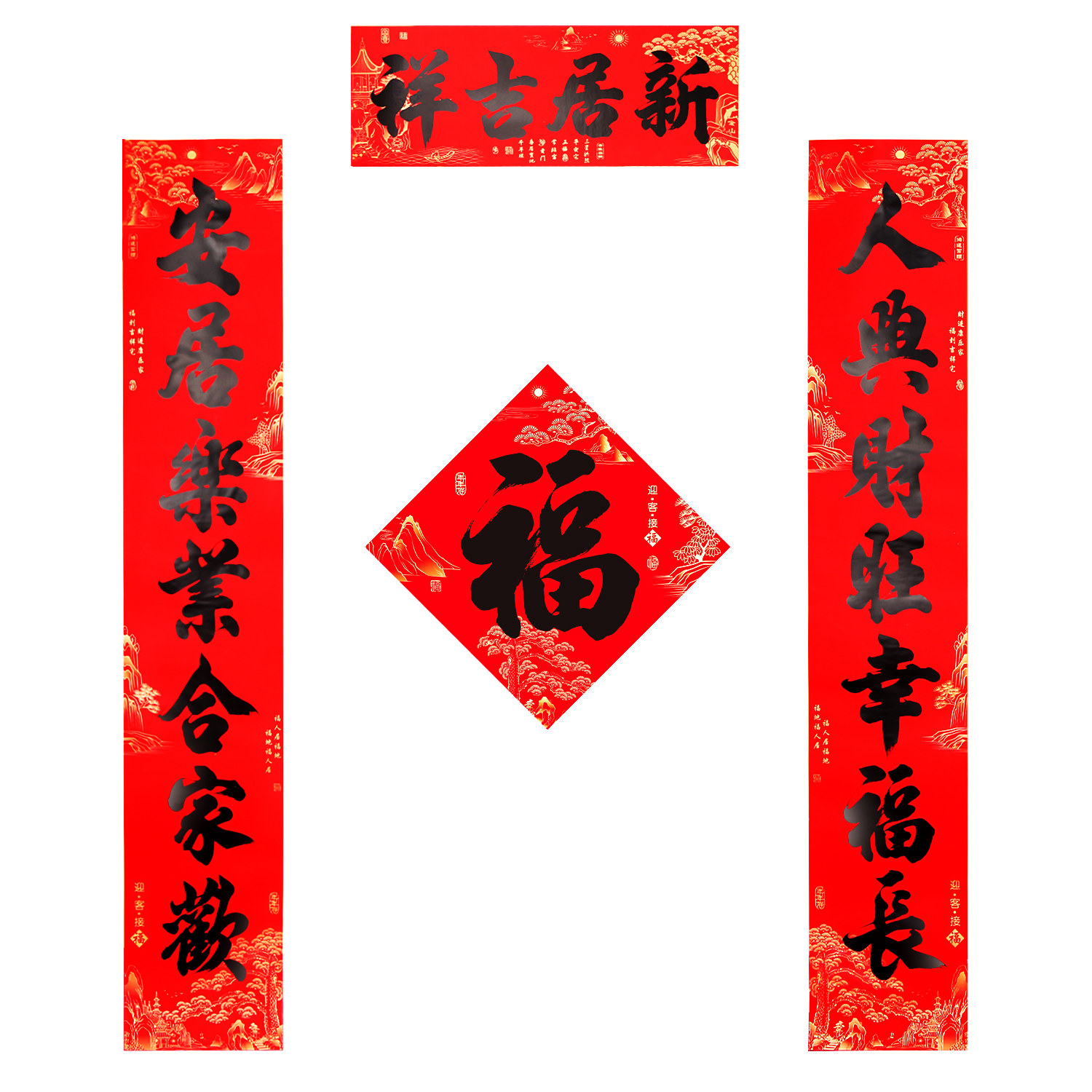 自带背胶对联春联2026新款 马年春节农村大门植绒门联绒布福字门贴