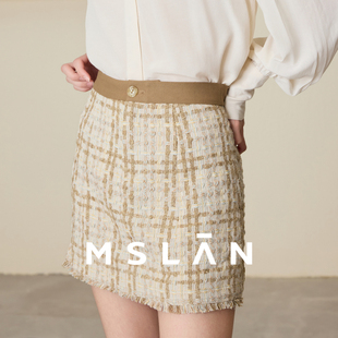 韩系超好看毛呢格子半身裙子女秋冬季 高腰显瘦a字长裙 2025年新款