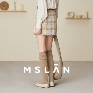 尺尺间Lsland绒感白色半身长裙女秋冬新款 加厚高克重花边a字裙