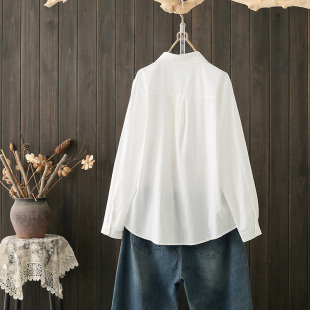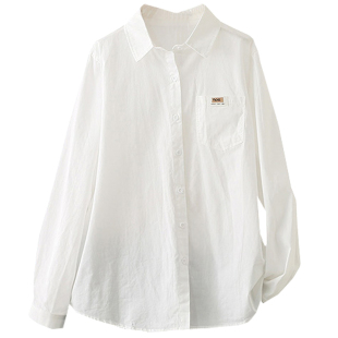内搭休闲纯棉上衣洋气衬衣 女长袖 春秋大码 200斤设计感小众白衬衫