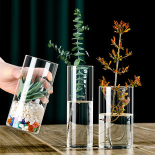 简约水培玻璃透明小花瓶水养绿萝植物花盆瓶子插花装 创意摆件 饰