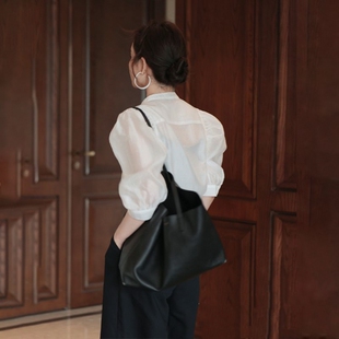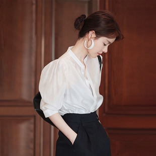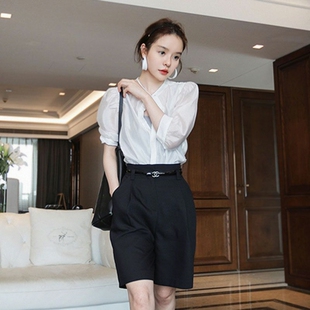 裤 纯欲感微透上衣遮肉衬衫 五分西装 小心机夏轻熟风穿搭套装 泡泡袖