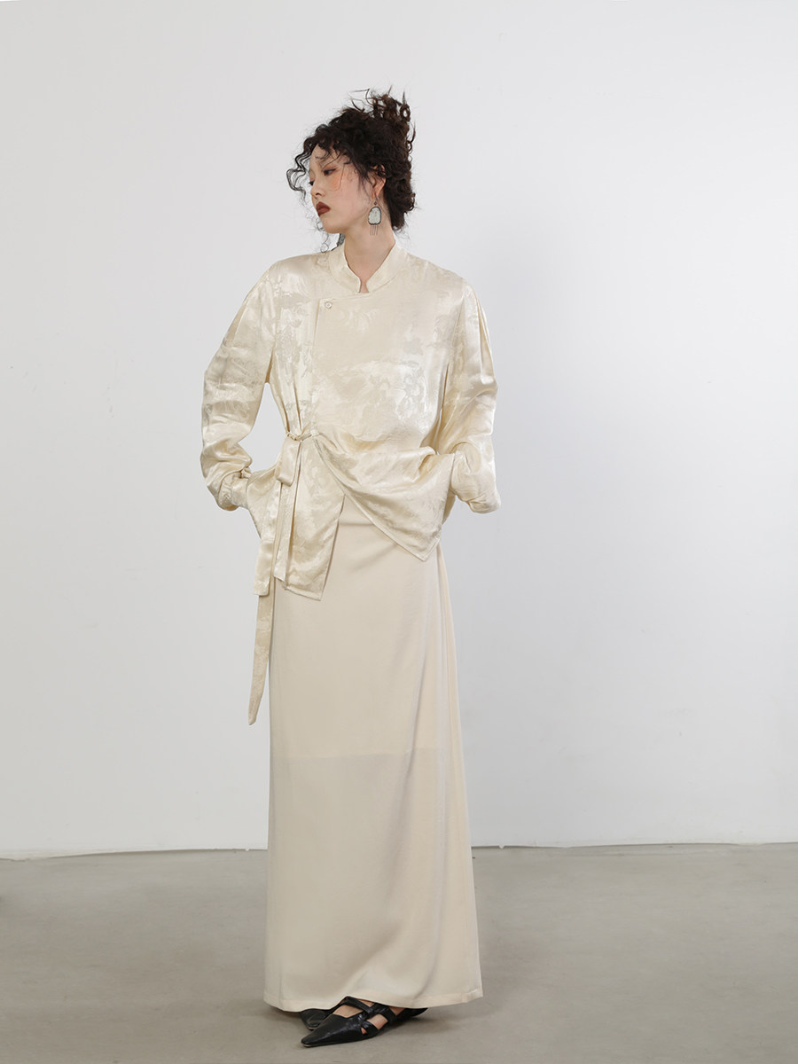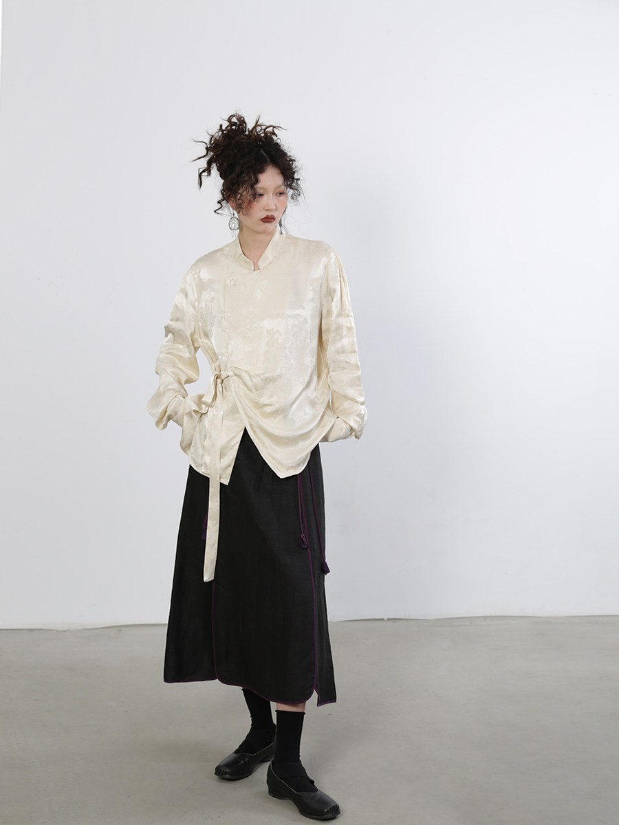 白色显瘦立领木耳打底衫 2025春秋新款 百搭上衣气质衬衣 女长袖 衬衫