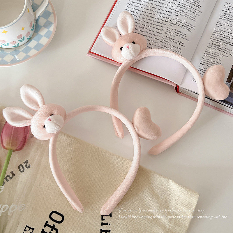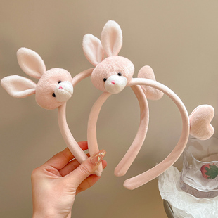 粉色小兔子爱心发箍女夏季 洗脸发捆压发卡头饰敷面膜专用束发头箍