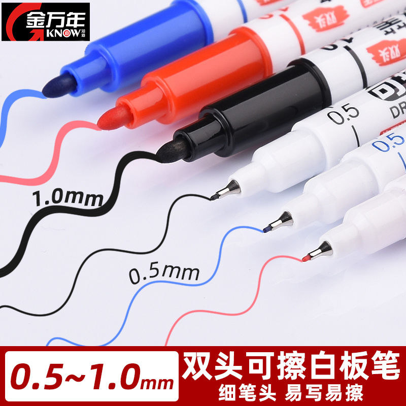 金万年细笔划白板笔0.5 1.0mm双头白板笔极细可擦干擦黑色托福考试gre可擦小白板笔彩票站走势图