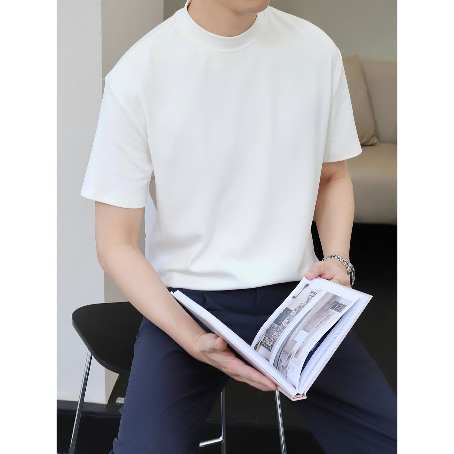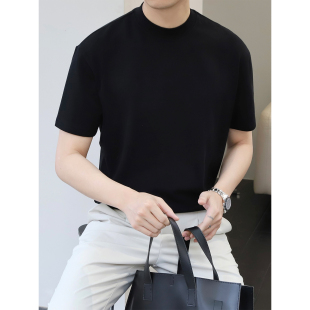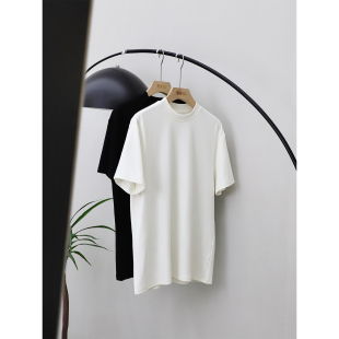 t恤 男潮牌亲肤圆领白色短袖 里奈280g加固小领口夏季 纯色打底衫
