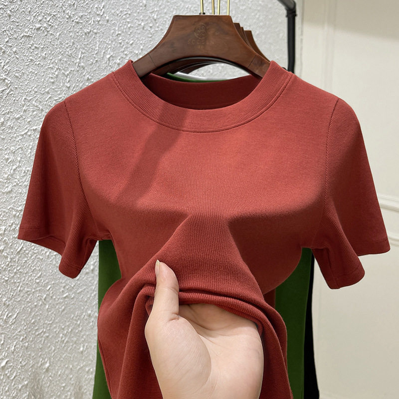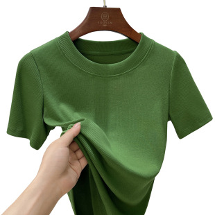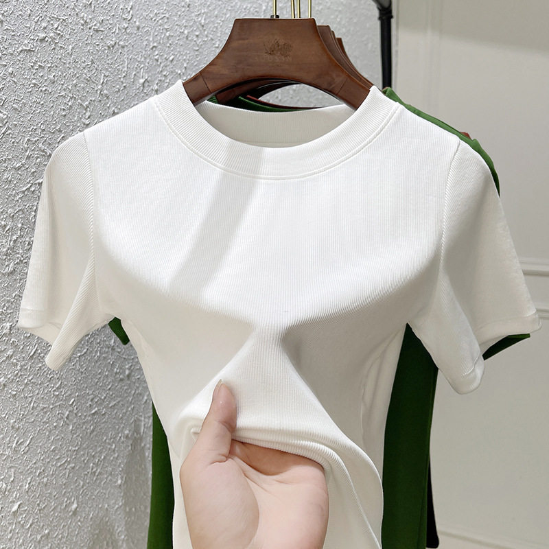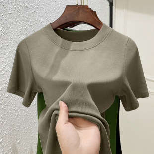 纯色圆领弹力棉体恤显瘦优可丝棉上衣 女装 白色短袖 t恤女2024新款