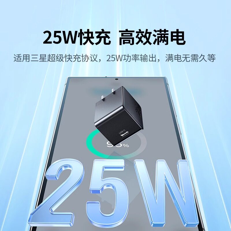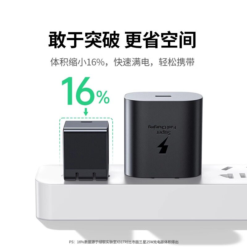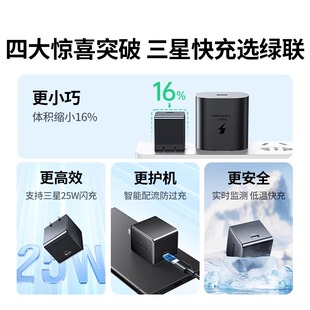 绿联25W充电器适用三星超级快充S10 折叠屏通用mini插头充电底座 s23手机s21ultra闪充TypeC安卓数据线套装