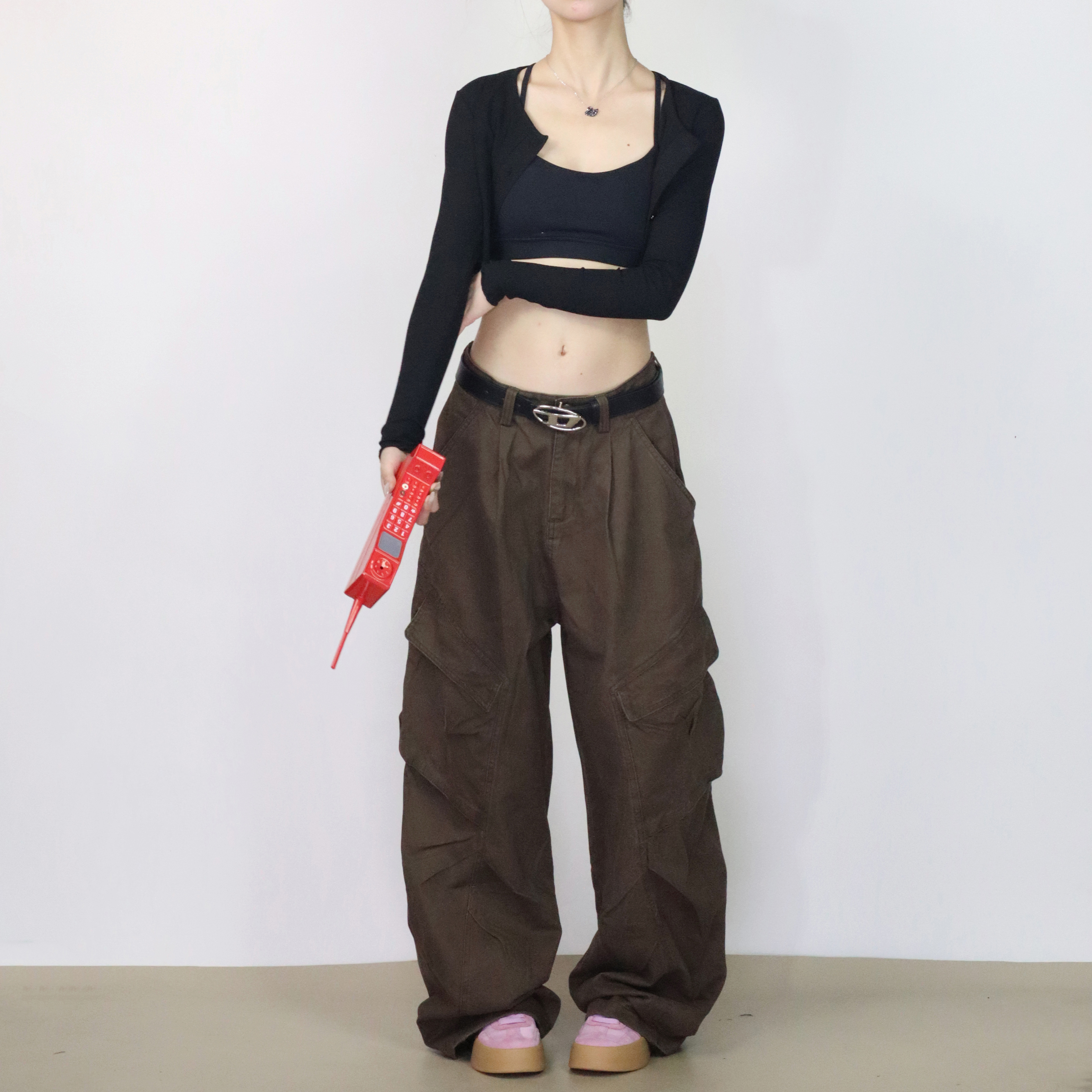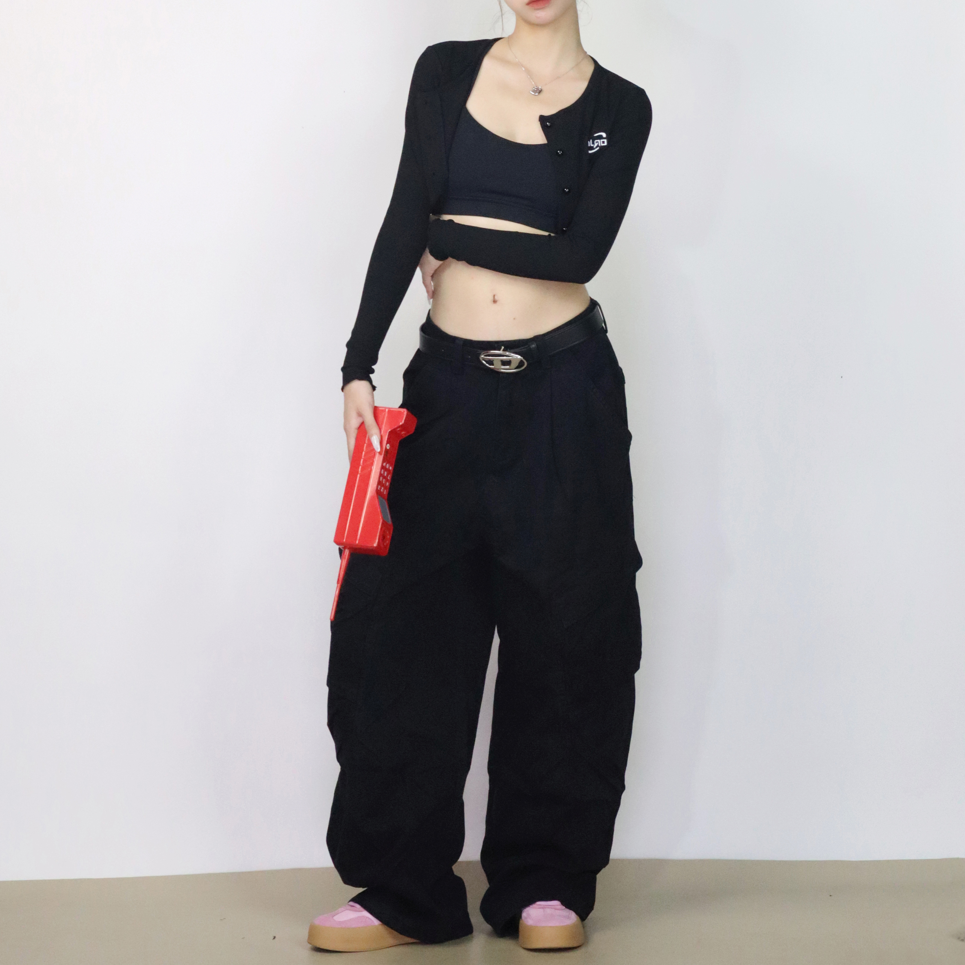 韩系高级感宽松显瘦拖地长裤 吴童童复古高腰阔腿直筒牛仔裤 女秋季