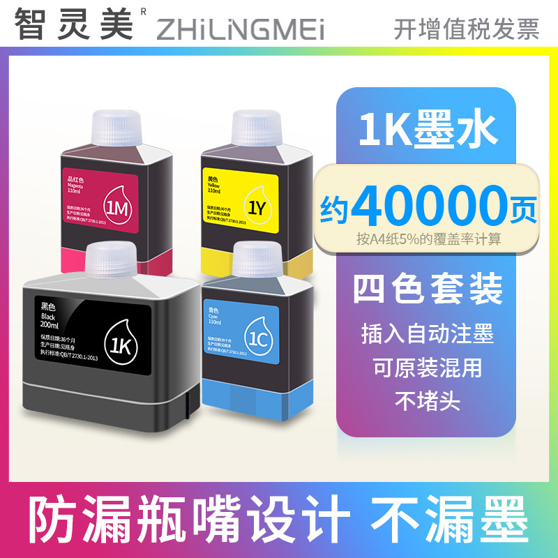 1Y黄 墨仓连供墨盒家用办公1C蓝 1M红色墨汁 L300w彩色无线喷墨打印机L300nw多功能一体式 适用得力1K墨水Deli