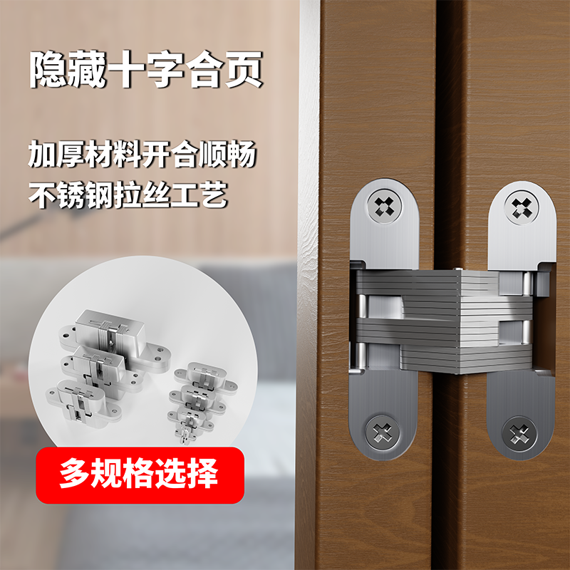 暗合页隐形门重型实心十字铰链防盗门木门柜门暗门折叠隐藏暗铰链