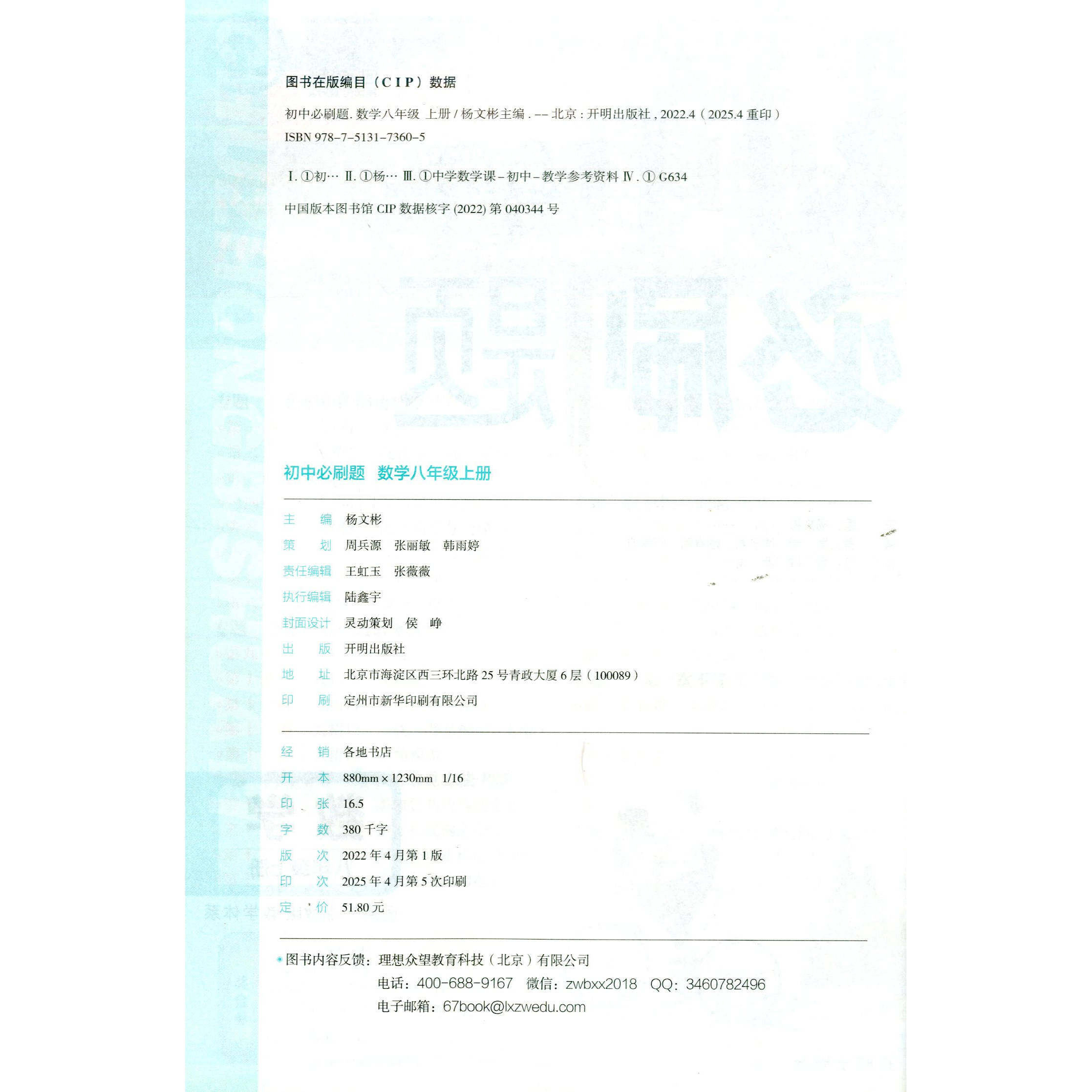 理想树初二8年级课堂同步作业本课课练教辅杨文彬单元 练习册 综合测试模拟题重点内容训练题 初中必刷题八年级上册数学浙教版 2026版