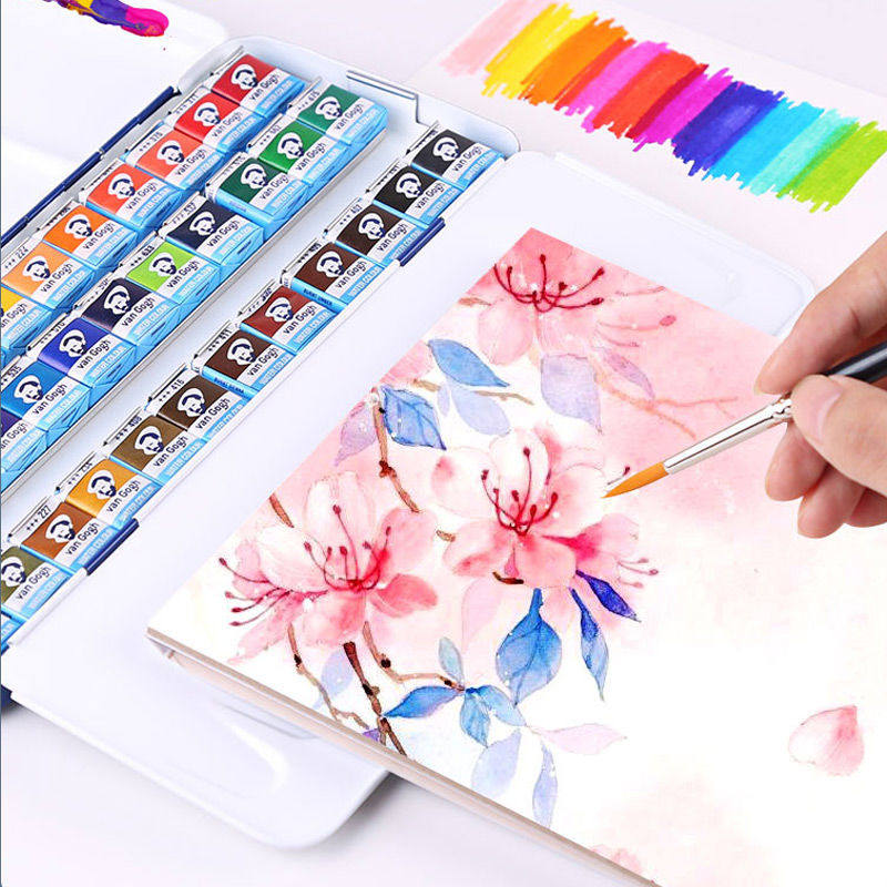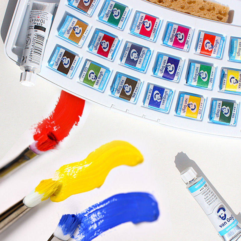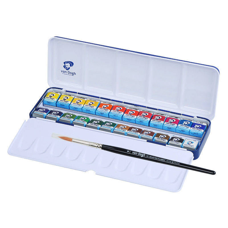 荷兰梵高固体水彩VAN 手绘24色蓝铁盒塑料盒 GOGH凡高水彩颜料套装
